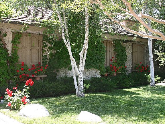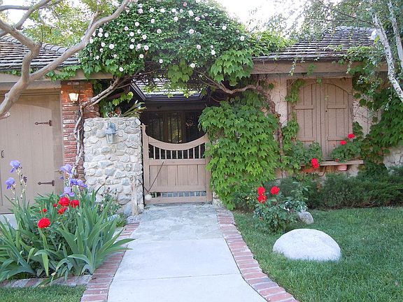 "Stonemill Cottage" is a charming French Country single level home with natural river rock and old world concrete tile roof in Nellie Gail Ranch. Significantly rebuilt with traditional elegance. Home has nearly 2800 sq. ft with beautiful interior, hardwood flooring, elegant living room with fireplace, formal dining room, all with private garden views. Large entertaining family room with fireplace open to spacious kitchen with high ceilings and arched windows. This enchanting home is surrounded by beautiful trees offering privacy, tranquil country atmosphere, lush lawns, natural rock pond with custom water wheel, rose gardens, and room for entertaining, This equestrian property has easy access to the 4 stall barn + tack room, horse turnouts, large hay barn, storage areas, with direct access to 20 miles of bridle trails and large arena. The sweeping views of trees, gardens and the horses from both the house and patios make for an ideal setting on this beautiful 1/2 acre property. This unique home is perfect for entertaining and a relaxing lifestyle.