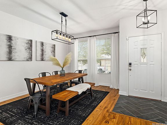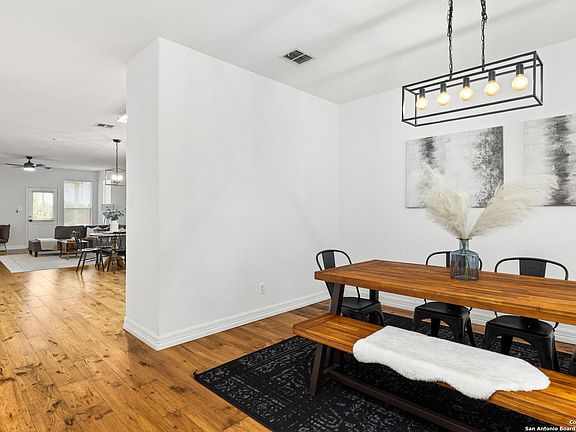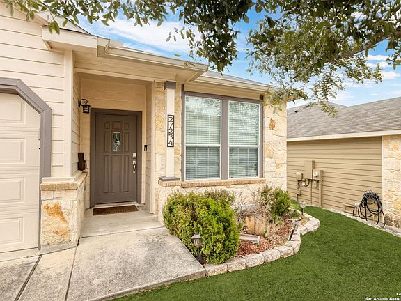 Stunning Residence in Boerne. This impressive home boasts three bedrooms and two bathrooms. Upon entering, you will be greeted by an inviting foyer that leads to the living room, which opens to the dining room and a modern kitchen. The bright and open floor plan facilitates easy flow between the living, dining, and kitchen areas, making it ideal for entertaining. The spacious bedrooms, each with ample space and natural light, and two bathrooms, provide comfort and convenience. The primary suite features a large vanity with two sinks, a soaking tub, a glass-enclosed shower, and a walk-in closet. Throughout the main living areas, luxurious high-end flooring is installed, while the kitchen has been equipped with upgraded appliances. To reduce electricity consumption, the home is equipped with energy-efficient solar panels. The backyard offers a spacious brick paver patio overlooking the picturesque Texas Hill Country and providing privacy. Quality craftsmanship is evident throughout this home. This spectacular residence is situated conveniently in a great community, minutes from downtown Boerne and numerous dining, shopping, and entertainment options at the Rim and La Cantera.