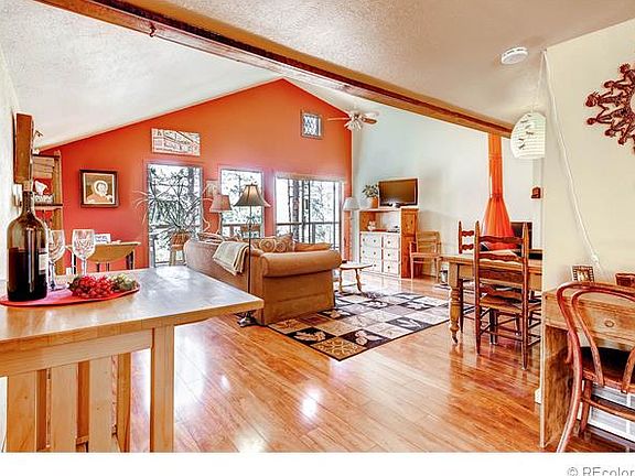 This charming Evergreen home has captivating views of Mount Evans. You will love the open flowing floor plan with vaulted ceilings and lots of windows. The master bedroom includes a 3/4 bath with stackable washer/dryer. The large secondary bedroom has a beautiful moss rock fireplace. This is a sweet surprise, welcome home! Showings start Tuesday, April 21st.