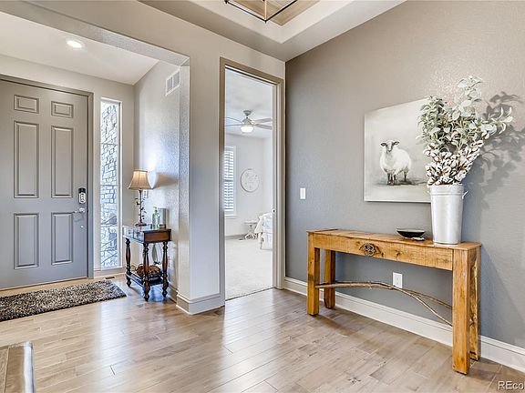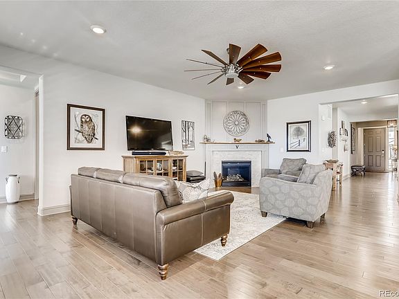 Stunning custom-feel ranch home backing to golf course and open space views in the highly desired Blackstone County Club community. Step inside where every upgrade and lifestyle convenience imaginable is found in this gorgeous beauty filled with charming craftsmanship that makes it one-of-a-kind. A grand open floor plan is enhanced with upgraded soft-close and pull-out cabinets throughout, engineered hardwood floors, an abundance of natural light, & custom coffered ceiling. The gourmet kitchen is every chef's dream, boasting a huge center island, stainless steel appliances with gas cooktop and French door refrigerator, and a dreamy walk-in pantry with butler's pantry connecting to the formal dining room. Open the sliding glass door to the newly added screened-in porch with a sliding barn door to the backyard and watch the golfers under a ceiling fan, and enjoy the wildlife on the rolling hills beyond. Connecting to the kitchen is the great room with impressive 12-blade ceiling fan and custom corner floor-to-ceiling gas fireplace. Office has incredible views, glass French doors, and access to the screened-in porch. Incredible primary retreat has a gorgeous tray ceiling, cozy sitting room, and spa-inspired 5-piece bath with a heavenly walk-in closet and private entrance to the spacious laundry room featuring custom shelving. The finished basement offers endless entertainment! Enjoy the grand recreation room with a custom built-in reading nook, built-in bunk beds with slide, spacious wet bar and vast open space for media or game nights. Two basement bedrooms and a designer ¾ bath is great for guests' privacy. Relax on the backyard's new concrete patio and take in the serene landscaped surroundings where wildlife are frequent guests, and enjoy the side yard's plethora of blooming perennials that make a gorgeous secret garden come spring! Great golf and amenities customized to your desire. Don't miss this wonderful opportunity to be in this gorgeous gem by the holidays!