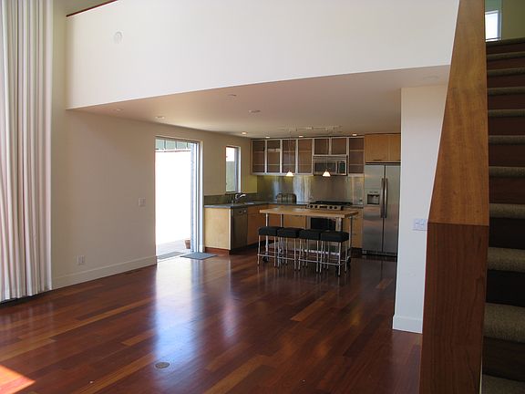 Beautiful West Berkeley loft townhouse. Soaring ceilings and natural light. Exquisite design details. Architect owned and built. Great location near the famous Berkeley Bowl Marketplace, small restaurants; a unique mixed use neighborhood with trees and walkable to Grayson cafe, Third Culture Bakery, Standard Faire and microbreweries. Safe neighborhood with easy access to Hiway 80 and the new biotech developments. Bike ride to Fourth Street or the bay trail. Easy parking. Unit has three floors. A huge sun filled terrace off the kitchen. Separate work space office or 2nd bedroom suite on ground floor with direct access to the garage. Hardwood and tile floors. Pet friendly. Tenants pay utilities except garbage One car garage included