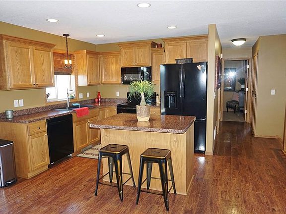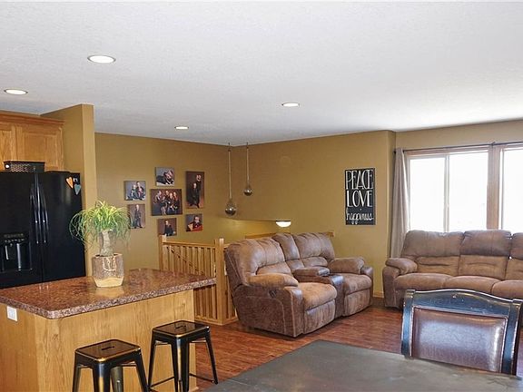Don't miss this perfect place to call home in Eagle's Landing! This quality built split-foyer home boasts 4 bedrooms and 2 baths. The main floor features an open living room with a large picture window that fills the space with warm, natural light. The chef-style kitchen offers plenty of cabinetry with neutral countertops, an island with pendant lighting, and spacious dining area with patio doors that lead to the deck and your fenced backyard. Wood laminate flooring throughout the main living area creates an open and inviting flow. The master bedroom features a walk-in closet and access to the full bath. A second bedroom completes the main floor. A fully finished daylight basement has a large family room, 2 nice-sized bedrooms, a 3/4 bath, laundry and access to the backyard and deck. The attached two-car garage is insulated and sheetrocked. This great NW location provides easy access to Minot AFB, Highway 83 and Highway 83 Bypass. It is close to Erik Ramstad Middle School along with several convenient amenities including coffee shops, grocery store, and fitness centers.