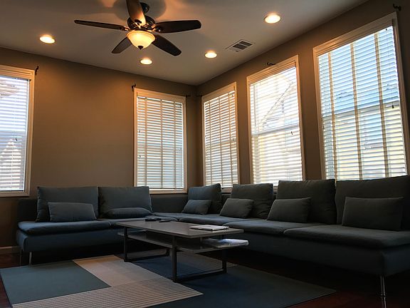 4 bed, 3 bath, 2346 sqft. + 2 car garage corner unit. (available mid - July, 2019) Opulent townhome in highly desirable school district, equipped with solar power system and Level 2 EV charging station, provides an upscale living experience. Tastefully upgraded spacious layout, with separate family, living room and a formal dining area. Open concept kitchen, sports stainless steel appliances, built-in microwave, refrigerator, gas oven, granite slab counter top with island. Laminate floor in living and kitchen areas matches cherry cabinets and pantry Large master bedroom leads to spacious master bathroom with glass shower enclosure and separate soaking tub. A fully functional custom-built walk in closet attached to the master bath. Plantation shutters, fireplace in living room. Upgraded carpet and ceiling fans in all the rooms. 1 bed and 1 full bath downstairs. 3 bedrooms and 2 full baths upstairs. A conveniently placed office area. Lots of custom cabinets throughout the home. Uniquely placed corner lot enjoys abundant sunlight throughout the day. Top of the line washer/dryer in a separate laundry room adjacent to 2 car garage. Owner pays HOA, Tenant pays utilities.