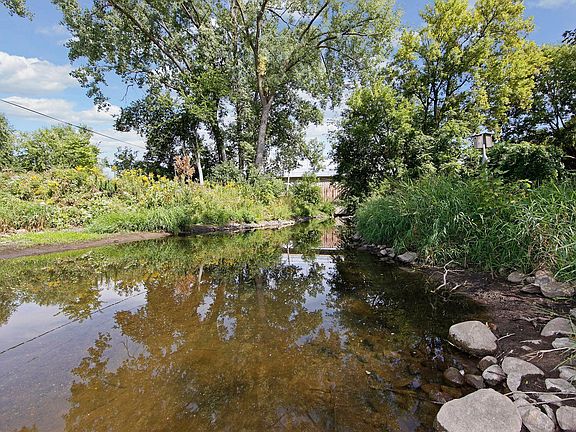 Mid-Century Modern Gem on Bassett Creek! Outstanding Golden Valley/Bassett Creek/Crystal neighborhood near Byerly’s and 85 Acre Bassett Creek Park. Naturalist’s delight, with half an acre of prairie, butterflies and wildlife plus approx 150 ft of creek frontage. Beautiful new front patio for outdoor entertaining, plus sunroom and private viewing deck. A magnificent architectural statement, with vaulted, beamed ceiling in the open great room, Restoration Hardware fixtures, floor-to-ceiling fireplace, expanses of glass and gorgeous views from every room. Fabulous 17x11 cook’s kitchen – stainless and granite with white enameled cabinetry. Enjoy four delightful bedrooms and two renovated baths. The walkout is fully finished, with open family room, 2nd gas fireplace, built-ins for your library and lots of storage. Great walking, 9 hole disc golf course, dog park, and trail systems. Easy to convert prairie to lawn if desired. So quiet and private, just minutes to downtown!