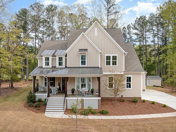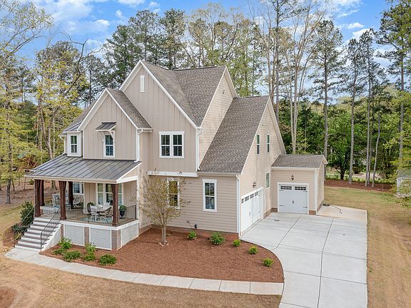 This is a house anyone would want to come home to with curb appeal for days! Spacious modern farmhouse with main floor luxury primary suite and main floor guest suite with dedicated private bathroom. Gourmet kitchen featuring large island, 5 burner gas cooktop, granite counters, large pantry and lots of cabinet space opens to living room and dining area. Comfortable living room features gas log fireplace and custom electric window blinds and curtains that convey to buyer. Office space can be converted to formal dining room if desired. Second floor features large family room with herringbone patterned accent wall, 2 bedrooms (one with dedicated bathroom), and a flex/bonus room. Screened porch off dining area features curtains and blinds that will convey with sale and grilling deck features a natural gas grill hookup and an umbrella to stay out of the sun while cooking. Lot is beautifully landscaped with a utility shed for storing mowers/yard equipment or can be used as a hobby shed.