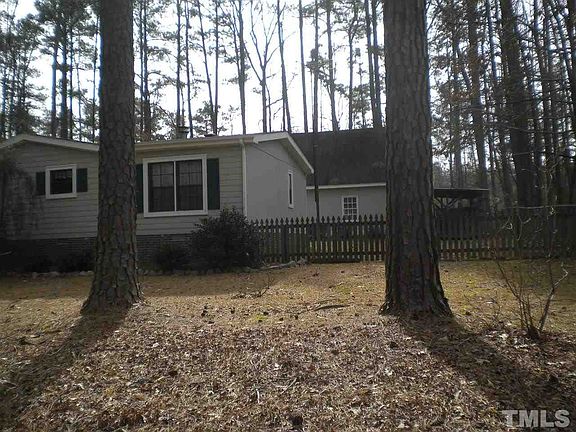 UNRESTRICTED Private Wooded Lot in Wake Co Convenient to Everything w/ a 24 X 22 Det Garage & GREAT Price*Look No More*Ranch home features 3 bedrms, 2 bath ready for new owners to select their choice of flooring w/ use of sellers flooring allowance of $3,000*Spacious family rm w/ stone surrounded wood burning stove & built in bookshelves along w/ laminate flooring*All appliances stay including washer & dryer*MANS CAVE(Det Garage) has unfinished 2nd floor*Asphalt Driveway & Parking*Fenced Yard*Covered Deck