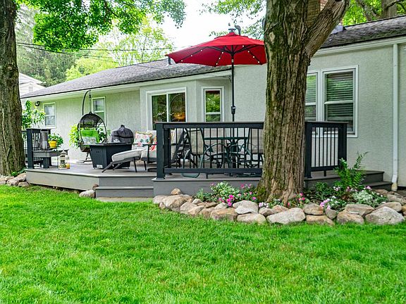 You will love to call this HOME! Updated,open floor plan UA ranch, with charming porch, amazing outdoor living space,fantastic yard. Nothing to do here but move in & enjoy. Roomy foyer greets you and flows into open living rm w gleaming hdwd flrs,overlooking composite deck/outdoor space. Spacious Dining w lg window flows to custom kitchen: Amish cabinetry,quartz counters,gas range,glass back splash, updated lighting/flooring. Fun fact:kitchen lighting can be turned diff colors! Family rm w focal white brick FP. Charming 1st flr laundry, updated 1/2 bath.Roomy en suite owner bedroom w dual closets, walk in shower, quartz counters, hdwood floors. 2 more generous bedrooms feature hdwd floors, great light,ample closets. Finished lower level for add living / play space and generous storage.