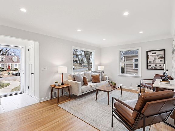 Truly a showstopper! This one has it all! Completely remodeled and updated with new kitchen, bathrooms, doors, flooring, lighting, paint, appliances, garage door, and so much more! Premier location in coveted Bronx Park neighborhood of Saint Louis Park. Quiet street, attractive curb appeal, fenced & flat yard. Large windows fill the home with natural light! Two bedrooms on the main level + one up + one down. Massive primary suite with multiple closets, dressing area, and en suite bathroom with dual vanity and tiled shower with frameless glass surround. Finished lower level. New furnace in 2023, new roof in 2018, and new metal siding in 2009. Appreciate the recessed lighting, real hardwood floors, cabinets that go to the ceiling, roll-out drawers inside the cabinets, tile backsplash, soft-close hardware, gas range, stainless steel appliances, bathroom exhaust fans, showers tiled to the ceiling, lots of storage, vinyl windows, storm door, leaf-guard gutters, and concrete driveway & sidewalks. Has forced air heat & central air conditioning, with additional brand new mini-split. Oversized two car garage is 24x24. Sought-after & convenient location, near parks, trails, public transport, restaurants, shopping, & entertainment! Walk to the popular dog park, playgrounds, skating rinks, community gardens, schools, & more!