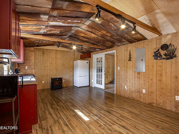 This cabin style home is situated on nearly an acre and a half of land in a tranquil rural setting, providing country living and privacy. With a creek located right across the road, you can enjoy the soothing sound of running water within walking distance and the natural beauty of the area. The property includes a screened-in porch at the back of the home, perfect for sipping your morning coffee while taking in the serene surroundings. This cute little place boasts a cozy living room with a corner fireplace, which, though needing a little work to finish, promises to be a great source of warmth and comfort during the winter months. In addition to the fireplace, the home is equipped with two space heaters to ensure that you stay warm and toasty in colder winter months. The interior features wood and tin accents, giving it a charming rustic and country aesthetic that adds to its overall appeal. This property is inviting and idyllic retreat for those seeking a peaceful and cozy home in a rural setting.