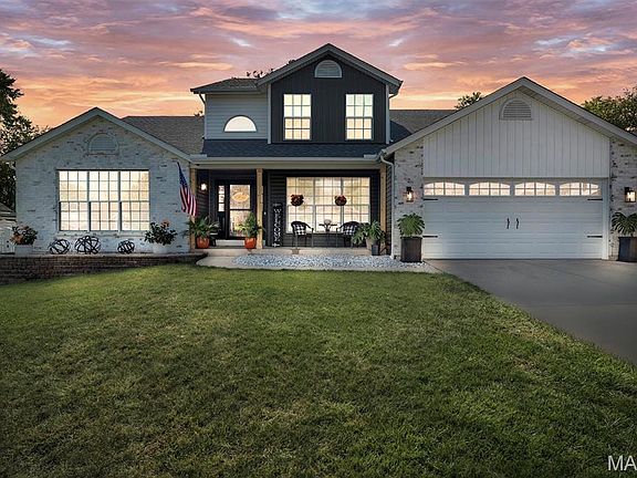 Dive into luxury with this stunning 4 bed, 3.5 bath, 1.5 story home located in the desirable Francis Howell school district. The centerpiece of this property is the beautiful inground pool, surrounded by private fence, creating your own serene retreat for summer gatherings or a quiet evening while listening to the soothing sounds of a tranquil Koi pond & waterfall nearby. As you walk in, notice the impressive 2-story great room, adorned with hand-scraped hardwood flooring, complemented by a cozy fireplace that adds charm to the living area. Updated kitchen, featuring 42-inch maple cabinets & granite countertops is a culinary dream. Luxurious 1st floor primary suite, complete with walk-in closet & recently renovated ADA bathroom boasts dual sinks, spacious shower—your personal spa. The main level also includes a separate living room/office, formal dining room & laundry area. Upstairs, you'll find 3 additional well-appointed bedrooms & 1 full bath, providing ample space for family or guests. The finished basement extends your living space, featuring a recreation area, wet bar & extra rooms, making it ideal for entertaining or relaxation. This home is not just beautiful but also well-maintained, with a recently replaced roof in 2024, siding & gutters in 2025, along with an updated HVAC system installed in 2022. The subdivision's trails lead directly to the popular Wapelhorst Park, providing endless opportunities for outdoor activities. Close to shopping, dining & schools!