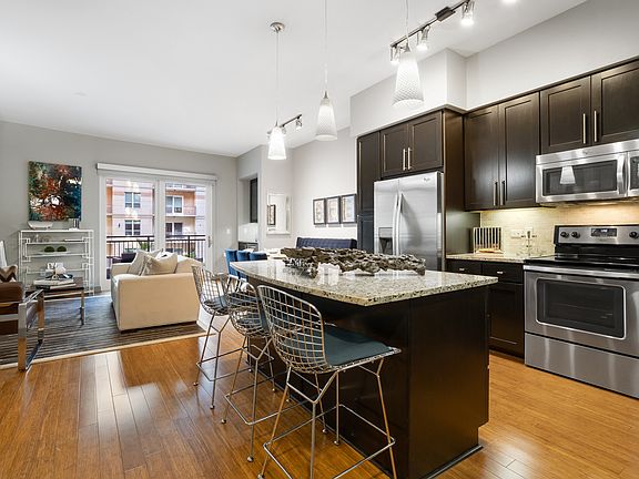 • Exterior features: Bicycle storage, Built-In Desk, Built-In Speakers with Bluetooth Capability, Business Center, Common Area Wi-Fi, Concierge, Conference Room, Custom Framed Vanity Mirrors, Dark Wood Kitchen Cabinets, Designer Backsplashes, Dog Grooming Station, Double Bathroom Vanities*, Electric Vehicle Charging Stations, Game Room, Garden, Granite Countertops in Kitchen and Bathrooms, Package Receiving, Pet Park, Private Workspaces, Pull-Out Kitchen Faucets, Recently Renovated Units, Secondary Access to Bathrooms from Living Area*, Solar Shade Window Treatments, Stainless Steel Appliances, TV Lounge, USB Outlets in Kitchen and Bedrooms, Walk-In Showers*, Yoga/Cardio Room