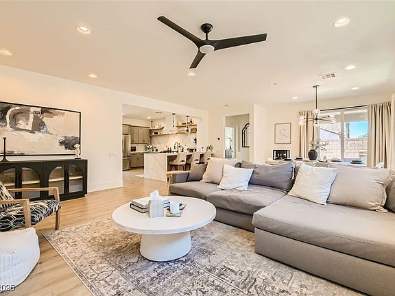 This beautifully updated single-story home offers 3 bedrooms and 2 full baths, designed with timeless elegance and modern finishes throughout. Located in Anthem Highlands, this home makes a lasting impression from the moment you arrive. Step inside to discover a spacious open-concept layout filled with natural light. Warm luxury vinyl flooring runs throughout the home creating a seamless flow. The kitchen is a true centerpiece, featuring sleek gray cabinetry, quartz countertops that extend up as a full-height backsplash, stainless steel appliances, and an oversized waterfall island with ample prep space and bar seating. Both bathrooms offer a spa-like retreat with custom vanities, modern fixtures, and glass-enclosed showers. The primary suite is a true sanctuary, complete with a freestanding soaking tub perfect to unwind. Outside, enjoy low-maintenance landscaping, a covered patio, and an above-ground hot tub. The oversized two-car garage adds extra storage and convenience.