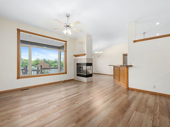 Welcome to this beautifully maintained split-floorplan home, offering both space and style in the desirable Derby area. From the moment you enter, you'll be captivated by the natural light and thoughtful layout. The expansive master suite is a true retreat, featuring two spacious closets and a private bathroom with double vanity sinks, a separate tub, and a shower. Newer luxury vinyl flooring flows seamlessly throughout most of the main floor, offering durability and elegance. The heart of the home is the open kitchen, complete with solid surface countertops and a convenient main floor laundry just off the garage. The adjoining dining room boasts a two-way fireplace that adds warmth and ambiance, while the generous living room features a huge picture window that frames breathtaking views of the lake. Step out onto the covered deck from the dining room and enjoy peaceful, scenic views — the perfect spot for outdoor dining or relaxing with a cup of coffee. Two additional bedrooms and a full hall bathroom and a linen closet round out the main floor. The finished basement with an expansive family and game room area is ideal for hosting gatherings, and the walkout basement leads to a beautifully landscaped backyard. Two additional bedrooms, a full bathroom, and linen closet and storage space complete the lower level. The fenced backyard offers privacy and a wonderful play space. Situated on a beautiful lot, this home is just down the street from the neighborhood swimming pool and Stone Creek Park, featuring a playground and walking trails. Plus, you're within walking distance to the elementary school. This home truly has it all — spacious living areas, stunning views, 3 car garage and a location that's hard to beat. Don't miss your chance to make this your new home!