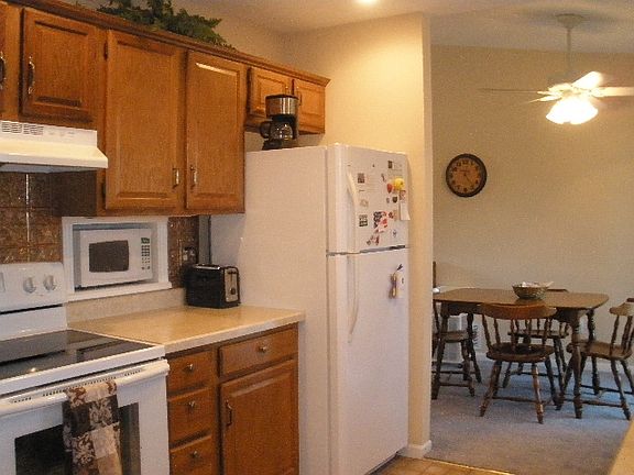 Perfectly maintained Condo with new carpet in living area and bedrooms 2018. New bath vanity and faucet 2018. Features sprinkler system and private fenced patio area. Vaulted ceilings in living room and dining area. Includes wood burning fireplace. Low condo fee includes snow removal, lawn care but not landscaping and exterior building maintenance. Buyer to verify taxes, schools and square footage