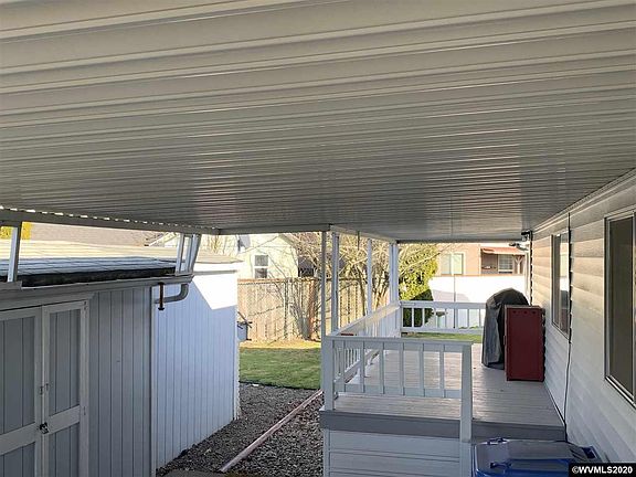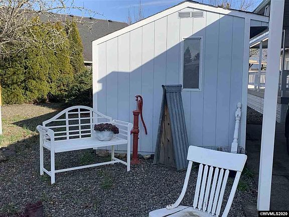 On one of the largest lots in 55+ park. Welcoming covered car port & private wrap-around porch. 3 nice sized BRs + additional den! New Kit w/white cabs. New interior paint, new heat pump keeps you cozy & cool! Kit skylight adds to great natural light throughout. Laundry/utility room off back covered porch. 2 good size sheds for great storage! Home sits at rear of the park on Oakland Lp bend, creating great private backyard! Park rent $460/mo incl. water/sewer/garbage/clubhouse. Park RV parking available.