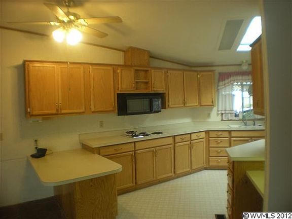 Meadowlark 55+ community. Beautifully maintained home, vaulted ceilings, tape & textured walls, 3 ceiling fans, 2 skylights, amazing kitchen with lots of storage, built-in cook top, eye level oven and built-in micro. Large utility area, slider from family room opens onto covered deck. Spacious master bath with walk-in shower. 2X6 exterior sidewalls. HP for summer cooling and winter heat. Low maintenance yard. 10X16 work shop. Low space rent.