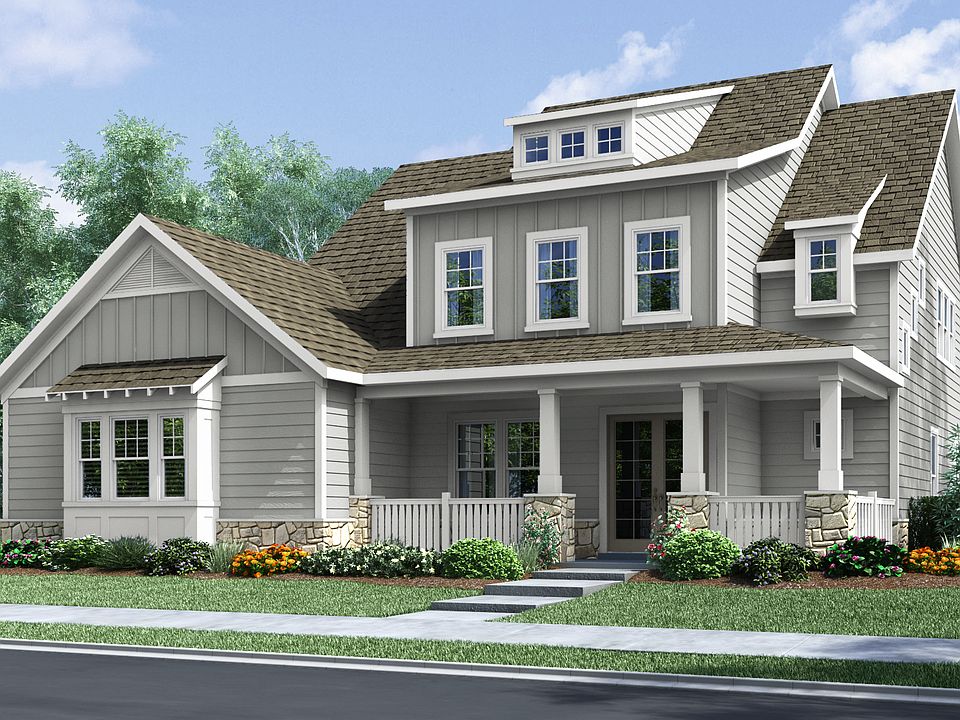 A beautiful home with charming Plank Cottage elevation. The Wellspring plan features a lovely first-floor owner's suite with a large, walk-in closet and luxurious owner's bath with free standing soaking tub. Enjoy cooking in the chef's kitchen equipped with wall oven, gas cooktop, upgraded cabinets, farmhouse sink and quartz countertops. A well-sized dining area opens to a covered outdoor living space with a gas outdoor fireplace. Upstairs you will find three additional bedrooms, two baths and a generous loft area.