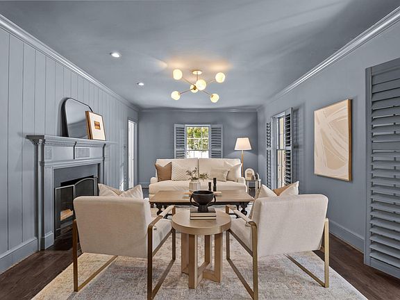 Charming Remodeled Ranch Inside the Beltline near Carolina Country Club! This white-painted brick ranch with inviting rocking chair front porch blends timeless charm with modern updates. Featuring 4 bedrooms and 3 full baths, this move-in ready home offers incredible style and comfort in one of Raleigh's most sought-after locations.  Step inside to discover a bright open kitchen and dining area anchored by a cozy wood-burning fireplace, flowing seamlessly into a sun-filled sunroom (with Dutch door!) overlooking the huge backyard, perfect - along with its 2 patios - for entertaining or quiet relaxation, or even a long water slide for the kids! With renovated bathrooms, refinished hardwood floors through the main level, new lighting, new carpet, and fresh paint inside and out, every detail has been thoughtfully refreshed.  This home enjoys three fireplaces, adding warmth and character throughout, and a wonderful walk-out basement with a large recreation room, bedroom, and full bath, ideal for guests or multi-generational living.  Just one block from Root Elementary and St. David's School, and minutes from North Hills, Raleigh's best shopping and dining, the Greenway, and historic Lassiter Mill Park, this home offers unmatched convenience in a premier setting.
