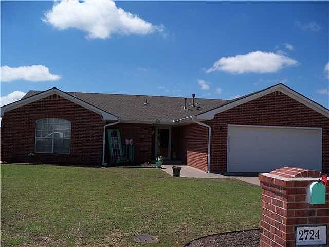 Move in ready! New carpet and paint! 3/2/2 built in 1999 - nice floor plan! Living Room has vaulted ceiling and beautiful fireplace. Dishwasher 1 year old, Storm Shelter 2012. Storage building in back. Close to I40, restaurants and shopping. Won't last long!