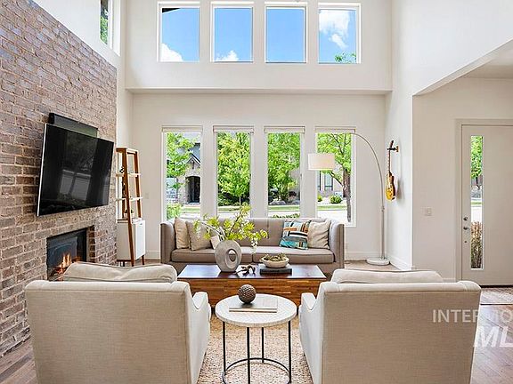 Nestled within the heart of Harris Ranch, this sophisticated home epitomizes modern elegance and upscale living! Soaring ceilings and natural light from 2 story windows amplify the spacious great room accented by a chic, brick fireplace. Open-concept layout seamlessly integrates the living, dining, and kitchen areas, creating an ideal space for both intimate gatherings and lavish entertaining. Gourmet kitchen features gas range, ceiling height cabinetry and quartz countertops—a chef’s delight and focal point of the home. Beyond the expansive glass lies a private courtyard- perfect for al fresco dining or unwinding amidst the low-maintenance landscaping. Master suite with a hidden tech nook offers a spa-like ensuite, his/her vanities, and a stunning walk-in shower with dual shower heads. Each additional bedroom is generously sized with high end finishes and main level bedroom and full bath make the ideal guest space. Enjoy amazing proximity to two community pools, local dining, shopping and outdoor recreation!