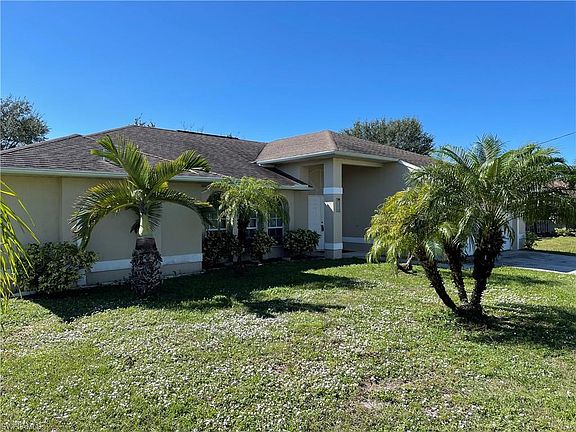 City Utilities just recently installed at this 2,000 sf. Home in SW Cape Coral. The yard features Many Established Palm Trees in Front and Larger Shade Trees in Back. Enter the Home thru Double Doors to a Split Family Room and Living Room plan with space for Formal Dining as well. The Master BR is spacious and features His & Hers Walk In Closets and Dual Sinks. Both Large Guest Bedrooms also have Walk In Closets. The Spacious Screened in and Under Truss Lanai is accessible from Master Bedroom, Living Room and Family Room, and even from the Guest Bathroom. The Southern Exposure backyard has room for a Pool in the Future and also has an existing Fenced in area for the Dog of the House! Lots of New Construction in this up and coming part of Cape Coral with Shopping, Schools, & Churches nearby and just a short drive to the Beautiful Beaches of SW Florida. Easy to show so make your appointment today!
