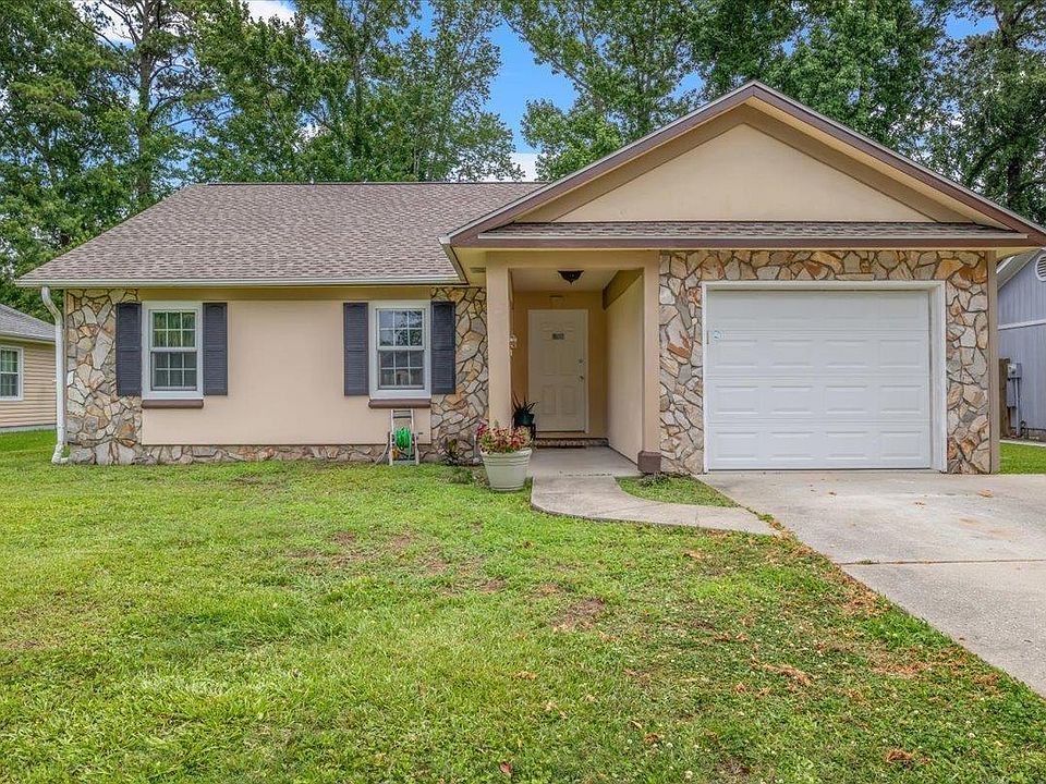 Location, Location, Location! Oak Forest is a quiet, centrally located community east of Hwy 17 Bypass and adjacent to Market Common. This is one of the original homes in the neighborhood and has more square footage than the newer homes. It also has good bones. The homeowner has updated and modified the look to bring it into the 21st century. The wood siding has been replaced with stucco on the front and vinyl siding around the rest of the home. The expanded driveway can hold up to 4 cars and the stone accent gives the home character. This 3BR/2BA home has a semi-modified garage with tiled flooring, but can easily be converted back to a garage, or used for an office, family room or 4th bedroom. The home has been freshly painted and includes a wood burning fireplace, a vaulted ceiling, LPV flooring and ceiling fans throughout. The kitchen has been updated with solid surface countertops, new cabinets and stainless steel appliances. The roof and water heater are both new. The private backyard is quiet and serene and includes and 8 x 10 detached shed. Located just minutes to the mall, airport, and the beach. The community has very low HOA dues and includes a Boat/RV storage area. Award winning schools in a great family neighborhood.