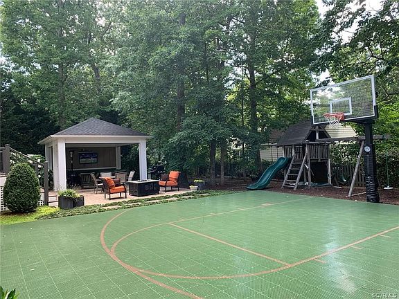 Welcome to this beautifully designed home on a quiet cul-de-sac in the heart of Short Pump with a one-of-a-kind backyard oasis that includes a pavilion with motorized screens, paver patio, and sport court with basketball goal. The main floor features 9' ceilings & hardwood floors, front and rear staircases, and corner office/study. The granite Kitchen is eat-in with an island, wooden cabinetry, abundant storage, and opens to a generous Family Room with gas fireplace. The carpeted second floor features a Master with 2 walk-in closets and large Master Bath. Features include plantation shutters/blinds, central vac and security system. Professionally landscaped yard with front/back irrigation. 1.5 miles south of Short Pump Town Center.