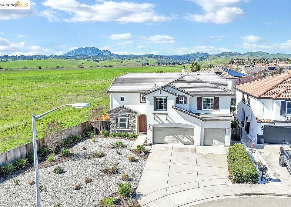 Discover breathtaking panoramic vistas and boundless space in this rare gem! Nestled in a tranquil private court, this stunning home boasts expansive living areas perfect for entertaining. The main level features a graceful dining room, a sunlit living room adorned with French doors leading to the backyard, and an expansive kitchen-family room ensemble complete with a cozy fireplace and eat-in area. A convenient bedroom and full bathroom on this level offer versatile living options. Ascend to the upper floor to find two versatile loft spaces and a magnificent master suite, complete with a fireplace and unparalleled views. Additional bedrooms share a convenient Jack and Jill bathroom with dual sinks. Outside, the front and back yards showcase water-wise landscaping, creating a serene oasis. Perfectly situated near Kaiser facilities, shopping, dining, and more, this home epitomizes luxurious living.