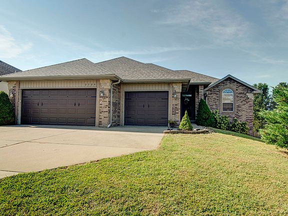 NEW ROOF!! THREE CAR GARAGE Walkout basement home in Ozark!! As you enter the home you will notice the gorgeous oak hardwood floors leading into the bright and open main living space. Vaulted ceilings with gas fireplace and deck for entertaining grace the main level. Bright with natural light kitchen, white cabinets, stainless appliances, and the eat-in bar area. Split-bedroom floor plan allows for privacy. 3 bedrooms including the master bedroom are on the main level. Large master suite with en-suite bathroom, jetted tub, and walk in shower, opposite of the two bedrooms, and full bath. Downstairs, enjoy the large living space. The basement is plumbed for a future wet-bar! Another full bathroom, bedroom, and non-conforming 5th bedroom, John Deere room with washtub are all located downstairs. Exterior patio looks over the well manicured lawn and full privacy fence. Do not miss this fantastic opportunity!!