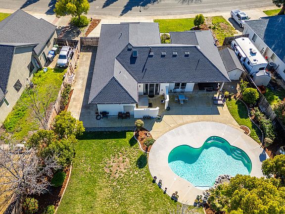 Impeccably maintained Silver Creek gem built in 2000 feels like new. Upscale upgrades include Shaw Sonora Shade luxury flooring, high-end Shaw carpeting, and all matching GE appliances in the kitchen. Fresh interior and exterior paint, along with updated granite countertops and subway tile backsplash, enhance the modern aesthetic. Stylish new lights and fixtures illuminate the space, while a quiet high-end whole house fan and new AC ensure year-round comfort. Outside, enjoy ample amenities with large RV/boat parking, spacious backyard, and a refreshing pool for summer relaxation. This stunning home seamlessly combines modern luxury and practicality for discerning buyers seeking comfort and style in Pacific Heights.