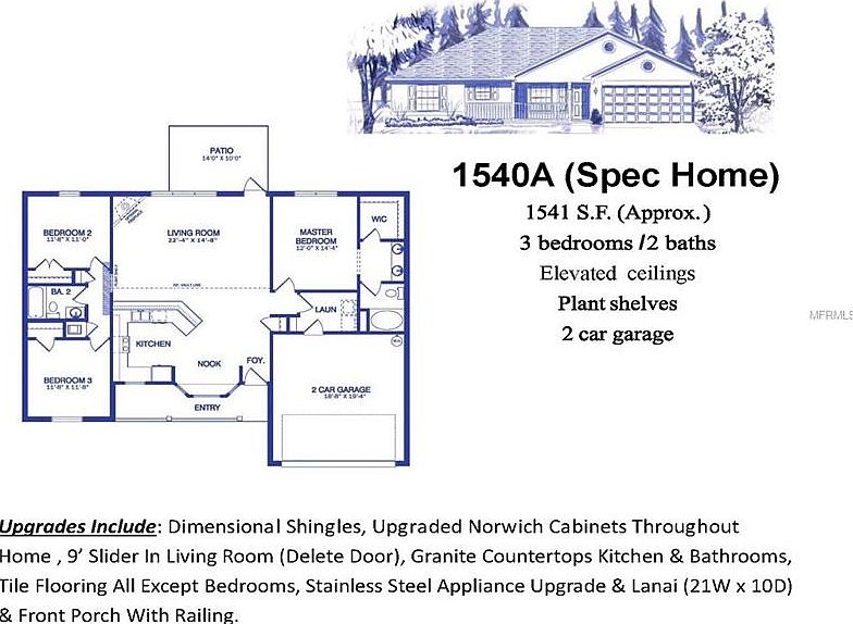 Pre-construction. To be built. Upgrades Include: Dimensional Shingles, Upgraded Norwich Cabinets Throughout Home , 9' Slider In Living Room (Delete Door), Granite Countertops Kitchen & Bathrooms, Tile Flooring All Except Bedrooms, Stainless Steel Appliance Upgrade & Lanai (21W x 10D) & Front Porch With Railing.