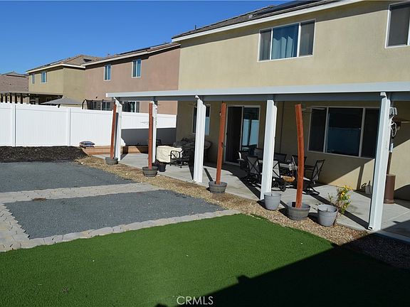 Beautiful 2-year old Menifee Home in quiet family oriented neighborhood with PAID SOLAR. Embrace the allure of modern luxury in this exquisite 4-bed, 3-full bath, 2207 sq ft home. Nestled within a serene neighborhood newly developed neighborhood with great backyard for children or entertaining. The curb appeal hints at the captivating interior and open back yard that awaits. The neutral paint palette provides a clean backdrop, allowing your personal style to shine. Ceiling fans and stone kitchen countertops. Clean and new home in a secluded location. Come explore the various living spaces family room, downstairs bedroom, upstairs loft and spacious kitchen that opens up to a great room. Spacious backyard with water wise landscape and patio great for entertaining and family BBQs or kids to play. Don't miss the opportunity to make this extraordinary property your own. Make it point to see this home!