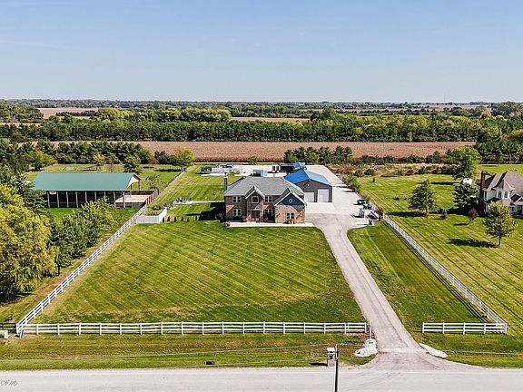 Nestled in the serene Green Garden Township within the top-rated Peotone school district, this fully remodeled estate in Peotone Schools offers over 4,000 square feet of luxurious living on a sprawling 2.5-acre lot. Perfect for at-home business owners, large families, tech enthusiasts, or equestrian lovers, this move-in-ready two-story home boasts up to 11 bedrooms (including three in a versatile barn) and 5 bathrooms, blending modern sophistication with rural charm. Step through a grand foyer with soaring 20-foot ceilings into a stunning dinning room, where a floor-to-ceiling flagstone fireplace with a gas starter creates a warm centerpiece. The space flows seamlessly into a spacious gourmet kitchen, featuring granite countertops, premium stainless steel appliances, a large island, pantry, and rich hardwood flooring. The 19x19 master suite is a private retreat with a tray ceiling, in-wall safe, lounge area, and a 19x15 walk-in closet with built-in shelves, complemented by a spa-inspired bathroom with two LED mirrors, a dedicated makeup sitting area with an LED mirror, dual vanities, soaker tub, and oversized shower. Entertainment abounds in the basement's theater room, equipped with Ashley chairs, a couch, a projector with a retractable screen, 5 speakers, and Google Assistant-controlled lighting, alongside a 10x10 kitchen with a fridge and popcorn station. A dedicated gym with included equipment adds to the home's versatility. Beyond the main house, a 60x40 insulated barn with a concrete floor, fire system, mini-splits, secure internet, bathroom, kitchen, and three potential bedrooms or offices offers endless possibilities for a home business or related living. A 40x15 storage barn with a mini-split and secure internet provides additional functionality. The freshly landscaped 2.5-acre lot features a covered patio with an outdoor TV, patio furniture, outdoor kitchen, speakers, and a hot tub enclosure, perfect for entertaining. Cutting-edge upgrades elevate this estate, including a $50,000 network that includes Ubiquiti network, 22 security cameras, plate readers, facial recognition, a monitored fire system ($39/month). Also, new west-facing windows. Located in unincorporated Will County with easy I-57 access to Chicago's south suburbs, shopping, and dining, this family-friendly estate benefits from Peotone schools (207U) and school bus service.