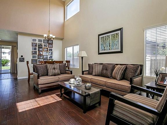Absolutely stunning Located in a highly coveted community of Horsethief Canyon Ranch. Boasting 1948sf, this 4 bedroom, 2.75 bathroom features an open spacious floor plan. Step through the front door into a large living room w/ soaring two-story ceilings, abundant natural light and beautiful wood flooring. The kitchen is immaculate with tumbled tile counter top and stainless steel appliances. This home also features a highly desirable downstairs bedroom with a bath across the hall for guests, in-laws, etc. Access to the 3 car garage is via the inside laundry room. Upstairs you will find a spacious Master with walk in closet, master bathroom with dual vanities, travertine tile flooring, two additional bedrooms and full bath with dual vanities. This home also features built in speakers providing you the best audio enjoyment. Backyard is amazing to watch the sunset or entertain friends & family while enjoying your amazing view or relaxing in the jacuzzi! This home has everything you could want in a community with 2 olympic sized pools, soccer and baseball fields, basketball and tennis courts, and a fitness center! It is also conveniently located just west of the I-15 Fwy. If you are interested in this property please contact Shana: or email: . PETS CONSIDERED Owner pays for landscaping & covers HOA fees.