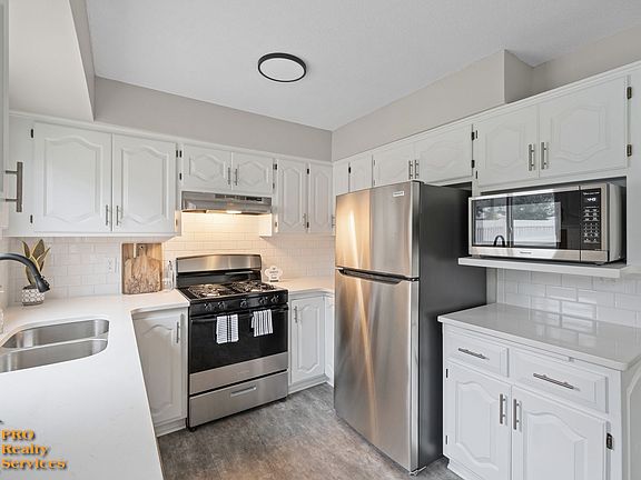 4 bedroom, 1 and 3/4 bathroom home in Coon Rapids that has been recently remodeled with a beautiful white kitchen with quartz countertops, subway tile backsplash, and stainless steel appliances! This home has a ton of great features including a bonus living room space, new LVP flooring and new carpet, fresh paint, central air, laundry, a 2 car detached garage, and an awesome enclosed backyard patio space!