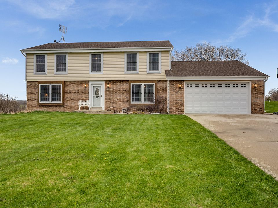 Brighton beauty on 1.7 acres has country setting and ''field of dreams'' views. Traditional 4-5 bedroom 2 story, 3-1/2 baths, wood-burning fireplace in FR (open to kitchen), giant master suite, MANY updates. In 2017: upper bathroom remodeled, new sump pump. In 2015-16 hardwood floors installed in dining room and living room, solid wood doors on main floor. In 2013: vinyl siding, Andersen windows. Roof replaced in 2008; sliding glass door and mound replacement system in 2005. New furnace in 2003. Basement with egress window(2011) was recently remodeled(3 rooms) has 3rd bathroom. Above ground pool & storage shed. Near Bong Recreation State Park (4,515 acres for camping, hiking, riding) and Brightondale link= 45 championship holes on 3 courses (Red/White/Blue).