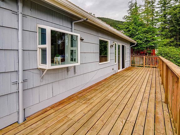 BONUS $2,500 credit to Buyer at closing! Ready to move? This charming and inviting home is move in ready! Enjoy many updates, open plan living that flows to the expansive exterior deck. Relax by the fire pit all while taking in the ocean and mountain view. This 3 bedroom 2 bathroom home boasts many features including a substantial amount of parking with access in the front and rear of the property. Minimal stairs to the main floor entry. A bay window to grow herbs and plants. Many updates that include recent paint throughout the interior and exterior, Corian counter tops in the kitchen, large walk in shower, vinyl windows and more. Efficient heat sources with the Toyo heater and electric infrared. Opportunity to convert the lower floor to a mother-in law suite or rental apartment. All of this and centrally located near the airport, ferry, schools, shopping, sports and recreation. Call today!
