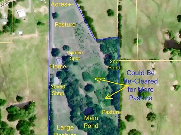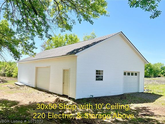 Pics of 30x50 Shop & more are on here now to take another look. Here is your chance to have a large home, 50x30 shop & 13+ acres which includes multiple pastures, 2 ponds & woods all in the Greenwood school district! 3 generous sized bedrooms. 15x14 Bonus room could be 4th on 1st floor if closet were added. New Revere Pewter interior paint, New main bathroom & currently remodeling upstairs bathroom. New fireplace mantle, crown molding, stair treads, handrail & spindles in living room. Fireplace 'Extraordinaire' w/blower system & Triple lined flue that will heat all night. Vinyl tilt windows. Primary BR is downstairs w/walk-in closet & french doors to patio. An additional bonus room has sound proofing for 23x13.5 music studio. Could be office, theater or more. Sunroom is narrow but would be perfect for houseplants with South facing windows. 50x30 shop has 2 insulated garage doors, 220 electric & more. Since shop has 10 ceiling w/Trust built ceiling joist, it possibly could be converted to a Barndominium & have 2 homes. Owner is still in process of doing work on upstairs bathroom, stairs, & more.