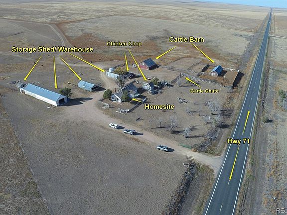 Calling all cattle ranchers or city slickers looking to become ranchers. This beautiful fully equipped Colorado cattle ranch property has 1968 deeded acres with 10 total structure including the home site. The main homesite comes with 1599 acres and another strip of land across the highway consisting of 320 acres for grazing. With 2.5 miles of frontage road right off the highway. Water, mineral and gas rights come with the property. Corrals, cattle shuts and lots of land for grazing. Electric, propane and water wells, 2 electric powered and 1 by windmill. The house itself has two bedrooms, full bath, large kitchen and dining room, comfy living room with wood burning fire place and an enclosed patio. 1 bedroom 1 bathroom guest house on the property. Not to many cattle ranches off the main highway with so much frontage road. Don't miss out on this incredible chance to get this property.