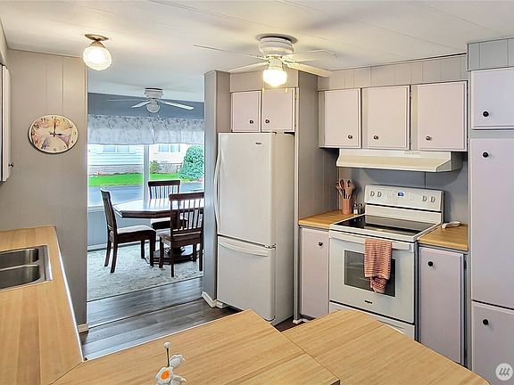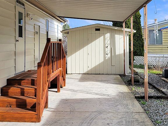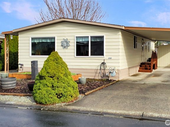 Charming & well-maintained manufactured home in 55+ Active Community! This comfortable 2 bedroom, 2 bath home is nestled in the beautifully maintained Park Village gated community perfect for easy living. Enjoy a spacious eat-in kitchen and a dining room featuring a built-in hutch for extra storage and charm. The front deck is ideal for relaxing, while the carport adds covered parking. Park Village offers a vibrant community with BBQs, craft fairs, and engaging events throughout the year. Plus, you're just minutes from I-5, shopping, the hospital, and all essential amenities.