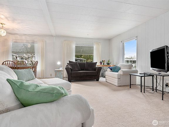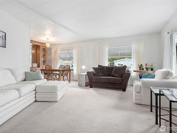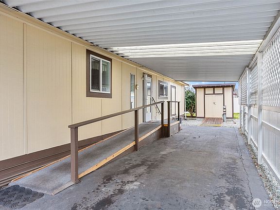 Experience easy living in the friendly and vibrant community of Park Village, one of Skagit County's most sought-after 55+ associations! This spacious, move-in ready home offers an inviting open-concept layout with built-in storage, flexible living space, and a dedicated home office area. The spacious kitchen includes a pantry and eat in area. The primary suite boasts a walk-in closet and a private bath with a step-in shower, while the guest bedroom enjoys easy access to a full bath. Newer LVP flooring, a metal roof, and a covered front porch add to the home's appeal. Enjoy two patio areas, a carport, extra parking, and a storage shed. Park Village offers a clubhouse, gated entry, and easy access to shopping and public transit!