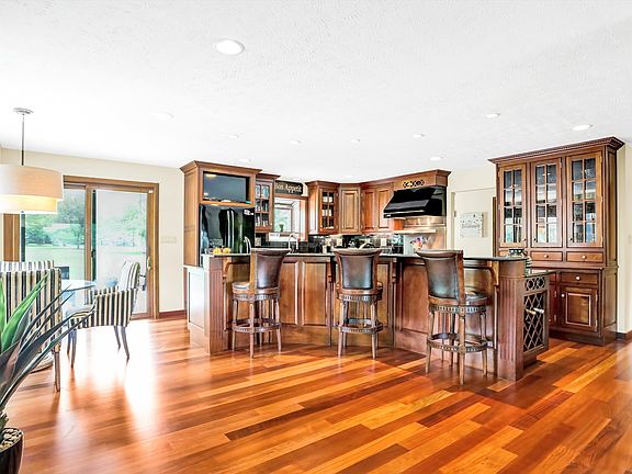 Welcome to your dream equestrian property, a true slice of paradise on 20 rolling acres with stunning views of a 10-acre lake. This estate offers luxury, functionality, and serene country living, providing the best lake view from all surrounding properties with absolute seclusion and no neighbors in sight. The charming 4-bedroom home features a newly remodeled kitchen with modern appliances and ample storage. The primary bedroom sanctuary includes a 2-person shower, coffee and drink bar, fireplace, and a large walk-in closet. Enjoy breathtaking lake views from the living spaces, screened-in porch, and spacious deck. Outside, the 2-year-old inground pool is complemented by a pool house with a full kitchen, outdoor bar, and grill. Gather around the firepit with family and friends against the picturesque lake backdrop. Equestrians will love the 8-stall horse barn with a feed and tack room, and the adjacent 50x50 cement storage barn. Car enthusiasts will appreciate the fully functioning 5-bay workshop, designed for working on vehicles, with heated floors, heating, and cooling. A small apartment upstairs is perfect for a caretaker or guests. The workshop includes outdoor specified parking spaces. The property features a long, winding asphalt driveway lined with mature trees, offering privacy and a picturesque approach. Explore the estate's nature trails winding around the 10-acre lake, perfect for walking, riding, or enjoying nature. This property is a paradise, offering an unparalleled lifestyle for equestrian enthusiasts, nature lovers, and those seeking a luxurious retreat. With stunning lake views at every turn, experience the perfect blend of elegance and rural charm in this extraordinary estate. There is nothing like the open view of the pool, screened-in porch, and lake to enhance your living experience.