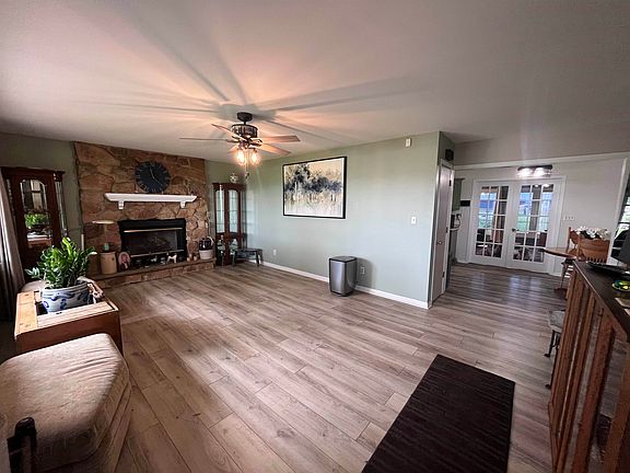 Great updated ranch on over 1/2 acre fenced in yard. Large living room and 3 nice sized bedrooms with newer vinyl plank flooring. Updated kitchen with newer stainless steel appliances and room for kitchen table. Peek-a-boo window into family room; an addition put on in 2001. This room has newer windows (2021) overlooking the huge backyard and french doors out to nice concrete patio. 2 car garage has addition (2001) with large 14x24 workshop area or room enough for a 3rd car, motorcycles, toys etc.... Large unfinished basement; great for storage or your finishing touches