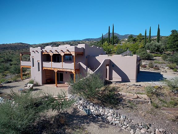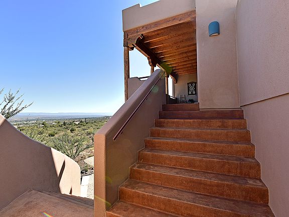 Magnificent Custom Santa Fe style home nestled in the foothills of the Mingus Mountains. Enjoy stunning sunsets & truly spectacular 180 degree views of the Red Rocks of Sedona, San Francisco Peaks, Sycamore Canyon & the Verde Valley. Owners have meticulously & lovingly cared for home. Upper level features a beautifully designed gourmet kitchen w/ Bosch counter depth appliances, granite counter tops, island seating, raised buffet & generous dining area w/ built in cabinets. Master bedroom features a private balcony overlooking Sedona & the Verde Valley. Exceptional master bath w/ double entry shower. Home is perfect for entertaining, the downstairs features a sunken great room w/ Kiva Gas Fireplace, 2 bedrooms, 2 bath, office & kitchenette.