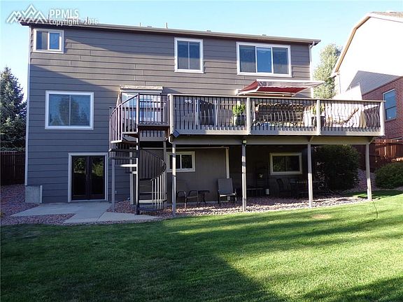 Beautiful 5 bedroom, 4 bath home located in desirable Summerfield neighborhood. Completely updated with large secondary bedrooms and full size walkout basement. Upgrades include granite slabs in the kitchen and bathrooms, custom dual master shower with heated bathroom floor, new exterior and interior paint, hardwood floors throughout the main level, upgraded carpet, and Renewal by Anderson windows throughout the entire home ($25K) with transferable lifetime warranty. Relax outdoors on the 450 square foot composite deck with spiral staircase that backs to a greenbelt with mountain views. In addition to the 2.5 car garage, there is a large Tuff Shed and a gated side area for outdoor recreation equipment. This home is located within walking distance to all District 20 IB schools with easy access to I-25 and Powers corridor making it a prime location. Enjoy the hard work that has been poured into this immaculate home