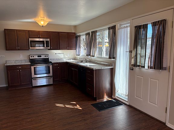 Available Now Lots of natural light streams through this 3 bedroom, 1.5 bathroom home. It has 1100 square feet and an oversized, attached 1 car garage with extra space for all your toys. Central air will keep you cool! This home flows with the living room, dining area and kitchen all open to each other. Enjoy the remodeled kitchen that features stainless steel appliances. Both bathrooms have been tastefully updated. The laundry hookups are conveniently located near the bedrooms. The last tenants left their washer and dryer and would like to sell them for $500/pair. If you don't want to buy them, I will have them removed. The master bedroom has a large wall to wall closet. Outside you'll find a large patio, storage shed and an easy to maintain fenced backyard. I'm willing to install a lawn if that is preferred. This house is centrally located in the Kittyhawk neighborhood. It is close to schools, shopping and Nancy Lewis Park. It has alley access and the mailman delivers to your front door! No smoking or pot growth allowed on the premises. Pets allowed with an additional $35/month pet fee per pet You must have verifiable proof of income 1 year lease. Tenant is responsible for all utilities and trash service