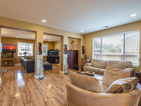 This exceptional family fun home in Clovis will impress! 5 bedroom 3 bath with a formal dining area, downstairs living room and upstairs open loft area makes for a perfect floor plan to house a big family. Spacious bedrooms featuring one secluded bedroom and full bath downstairs. New pergo laminate flooring in the downstairs area is simply stunning to the eye. Family size chef kitchen with stainless steel appliances and gas stove all look out to a new pool featuring a high efficiency pump along with remote control water feature. Corner lot, athletic grade turf in both back and front yards, oversized three car garage, new storage shed in side yard.
