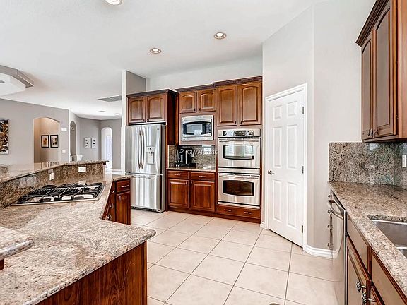 1 story w/courtyard and a bedroom w separate entrance for guests. Open kitchen has walk in pantry, granitecounters/back splash, microwave & double ovens. Large island houses the stainless steel gas stove top.Master bed is separate w/whirlpool tub & separate shower, dual sinks and w/in closet. Relaxing back yard hasmodern infinity pool/spa with fire feature & LED lighting. 3rd car gar was converted to office.