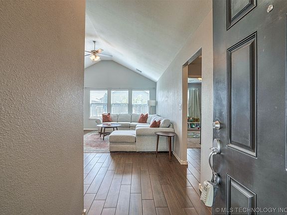 3 beds/2 bath/2 car home. Open and split floor plan w/vaulted living room. Floor is wood-like tile, granite, storm cellar & privacy fence. Great starter home! Kitchen has lots of cabinets w/small pantry. master bath has whirlpool soaker tub & separate shower.