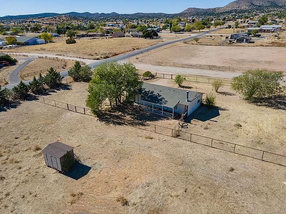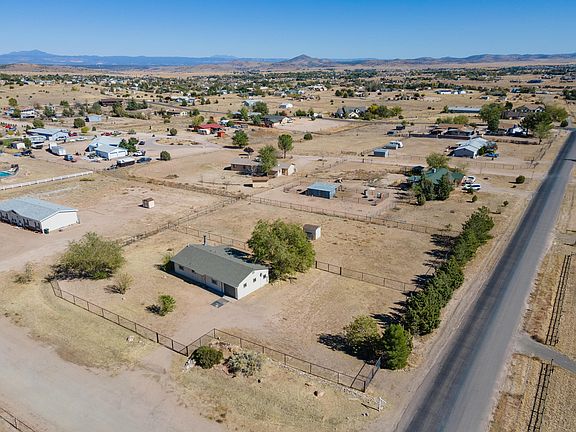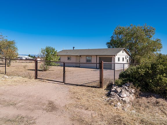 This horse property home sits in a beautiful neighborhood right off of a paved road with views of Granite Mountain and surrounting buttes. This wonderful home has so much to offer! 2 bedroom, 2 bathroom, tiled throughout, new carpet, shutters, new pipe fencing front and back, oversized hay shed, good producing well that was inspected in 2010 and pumped 10 gallons per minutes. 100% financing available. Come and make this beautiful home yours!